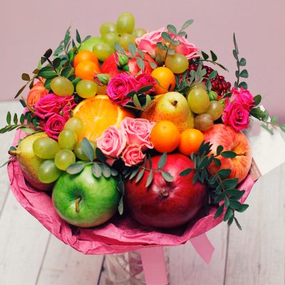 Фруктовые букеты — свежая идея подарка для жителей Перми. Это красочные композиции из фруктов и зелени, оформленные как настоящее произведение флористического искусства. Отлично подойдут для поздравлений, корпоративных подарков и сюрпризов, когда хочется удивить. Подарите яркий, вкусный и запоминающийся букет — вкусная альтернатива классике.