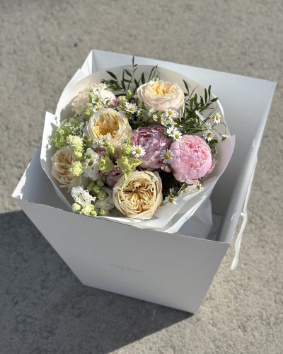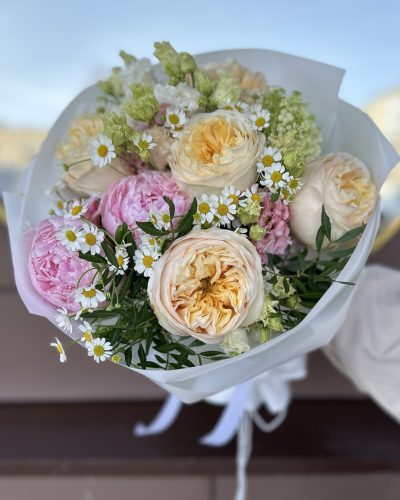 - Свежесть бутонов: Мы работаем напрямую с проверенными плантациями, поэтому собираем цветы на заказ только из свежих и крепких растений (розы, пионы, гортензии, экзотика).