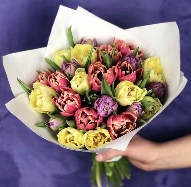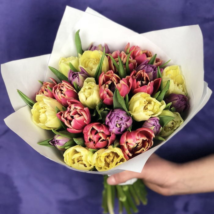 Букет из 25 пионовидных тюльпанов Взрывной Микс