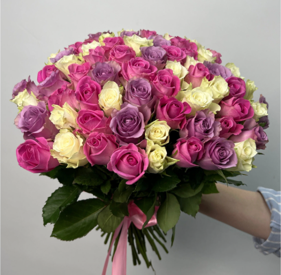 Нежный букет из 101 розы. Высота розы 35-40 см.