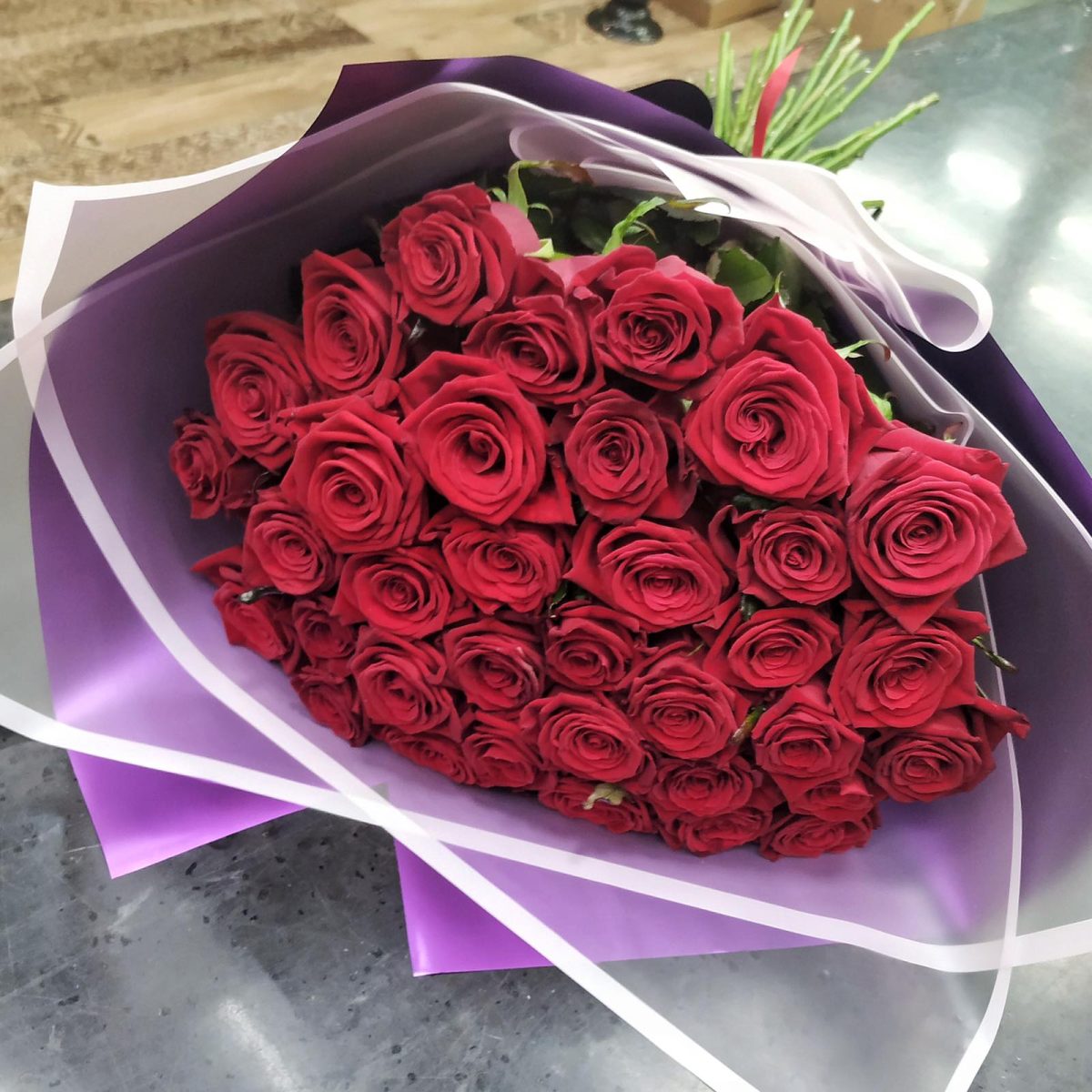 Состав: 35 красных роз 50 см.