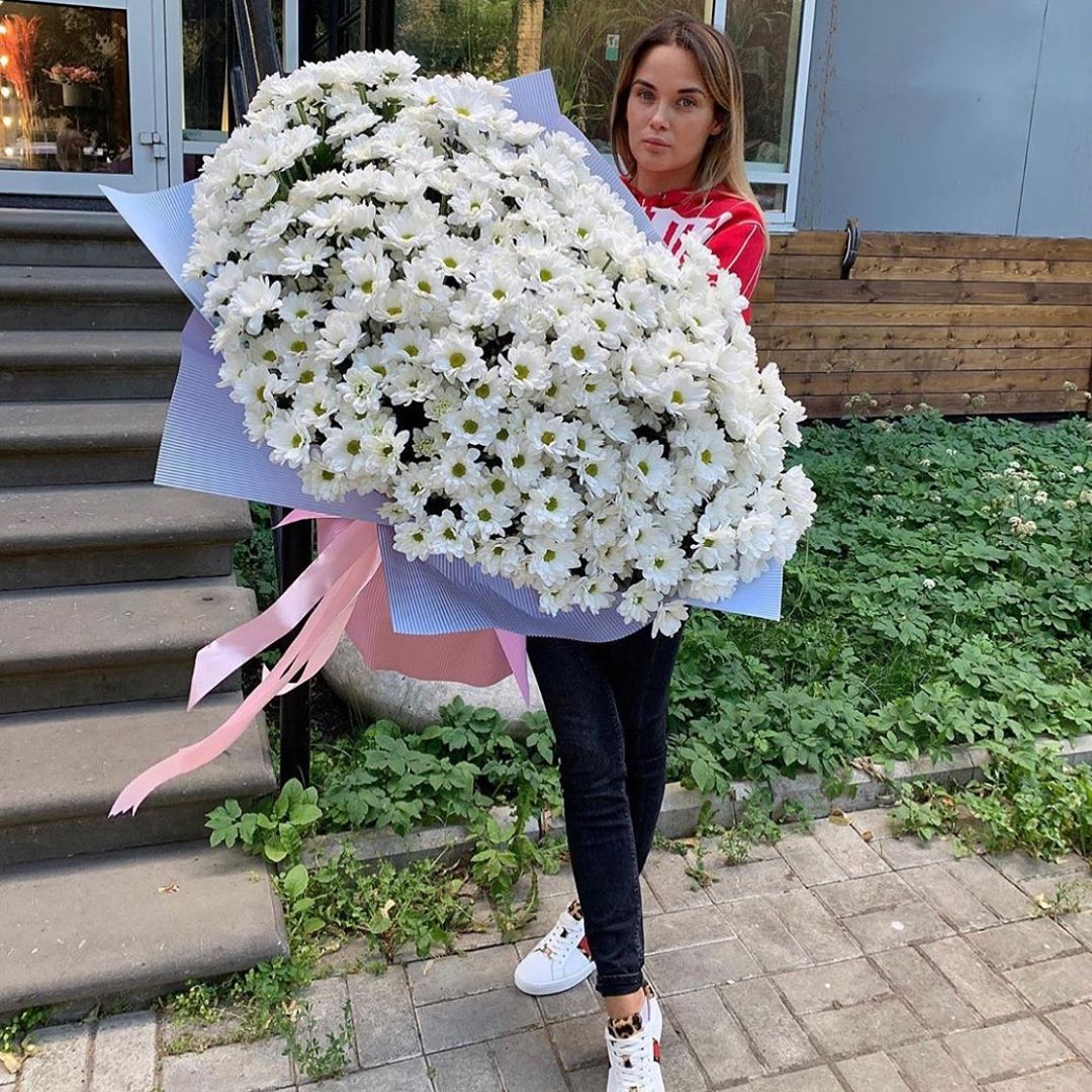 Букет состоит из 51 веточки кустовой белой ромашковой хризантемы