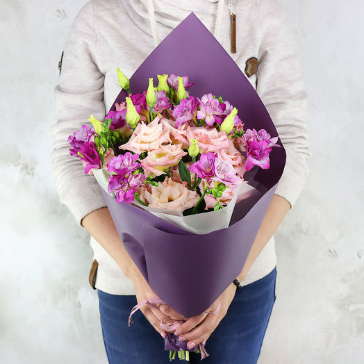 Букет из 7 веточек эустом в фиолетовом оформлении