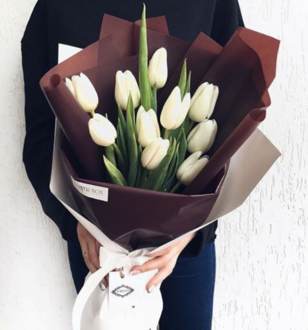 Букет из 9 белых тюльпанов