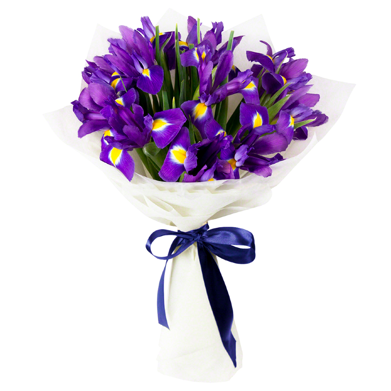 Букет Мгновенье из 25 ириса, в нежном белоснежном оформлении.
