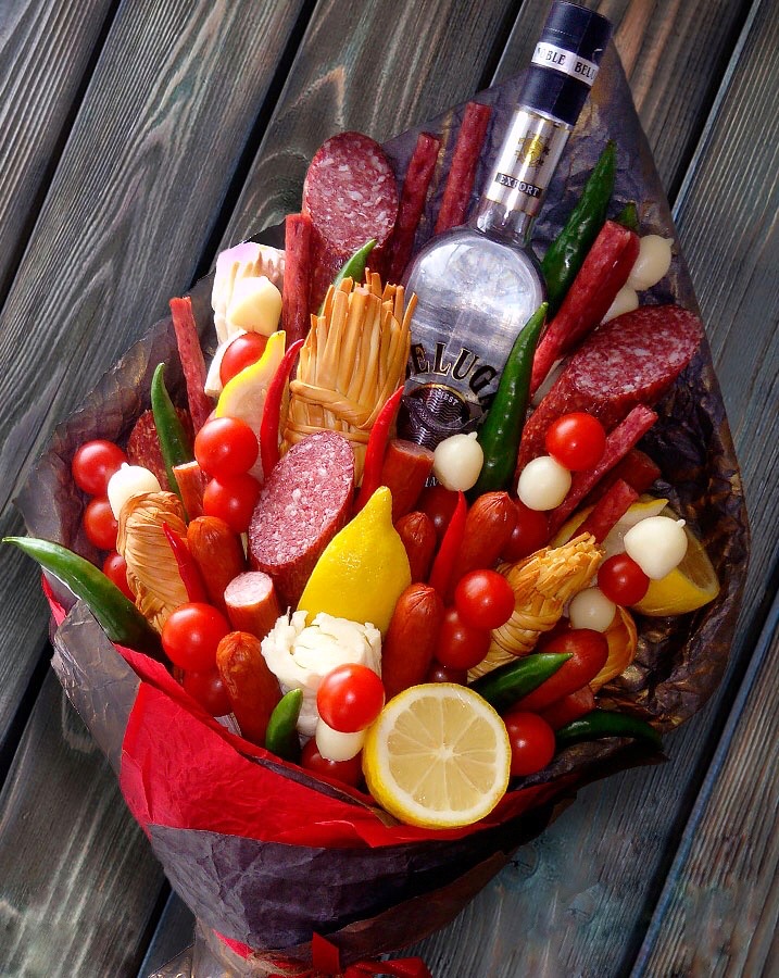 Состав: колбаса сыро-копчёная, колбаски охотничьи, колбаски пивчики, сыр косичка копчёный, помидоры черри, сыр сливочный, перец чили, лимон, напиток.