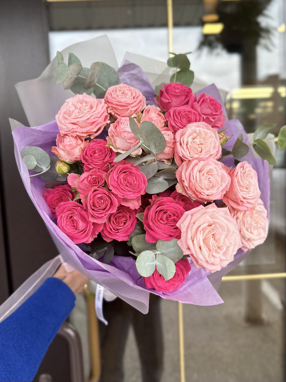 Состав: 5 веточек кустовых роз, эвкалипта.