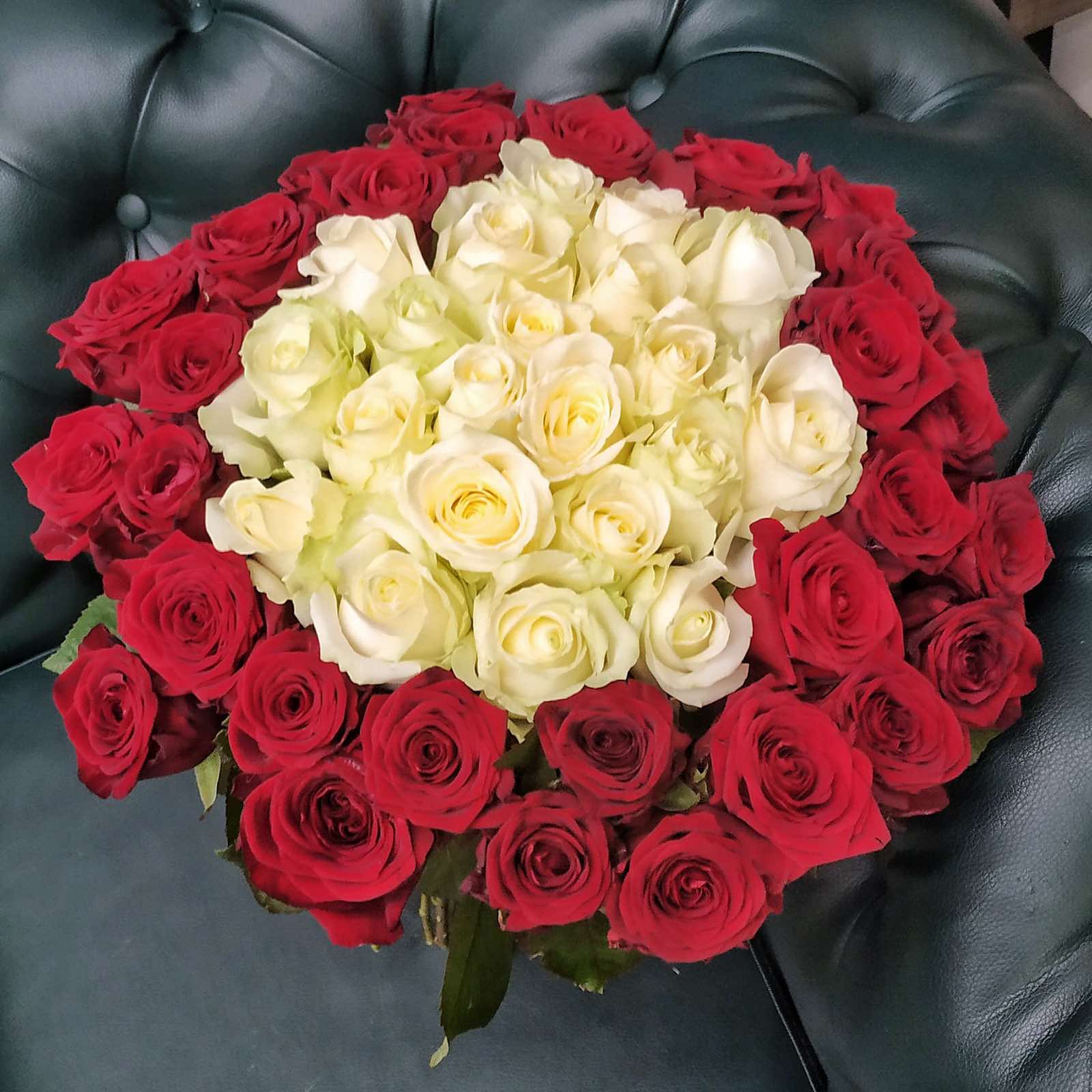 Состав: 51 роза красная и белая 50см.