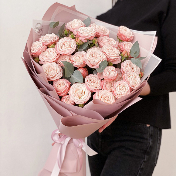 Состав: 7 веточек кустовых роз, эвкалипт.