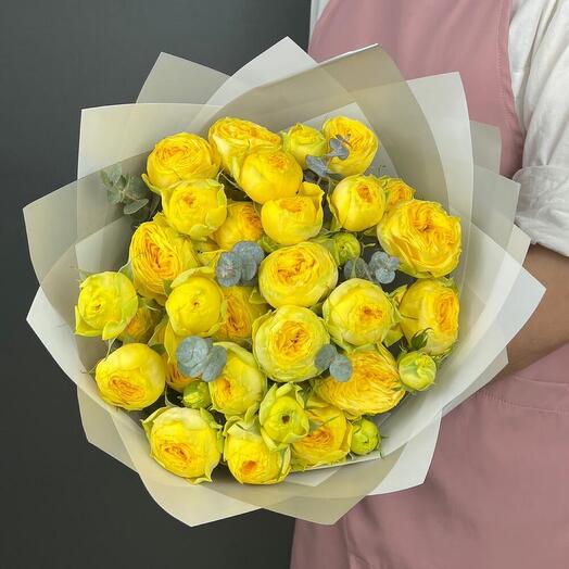 Состав: 9 веточек кустовых роз и эвкалипта.