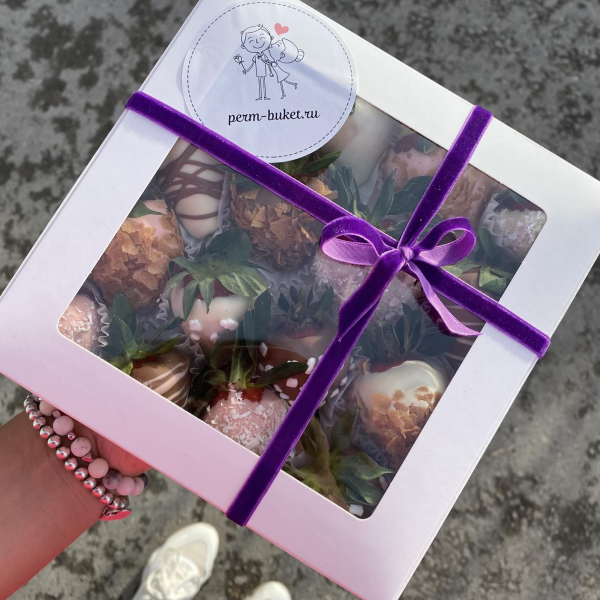 Небольшая коробочка вкусной и сладкой клубники покрытая настоящим шоколадом