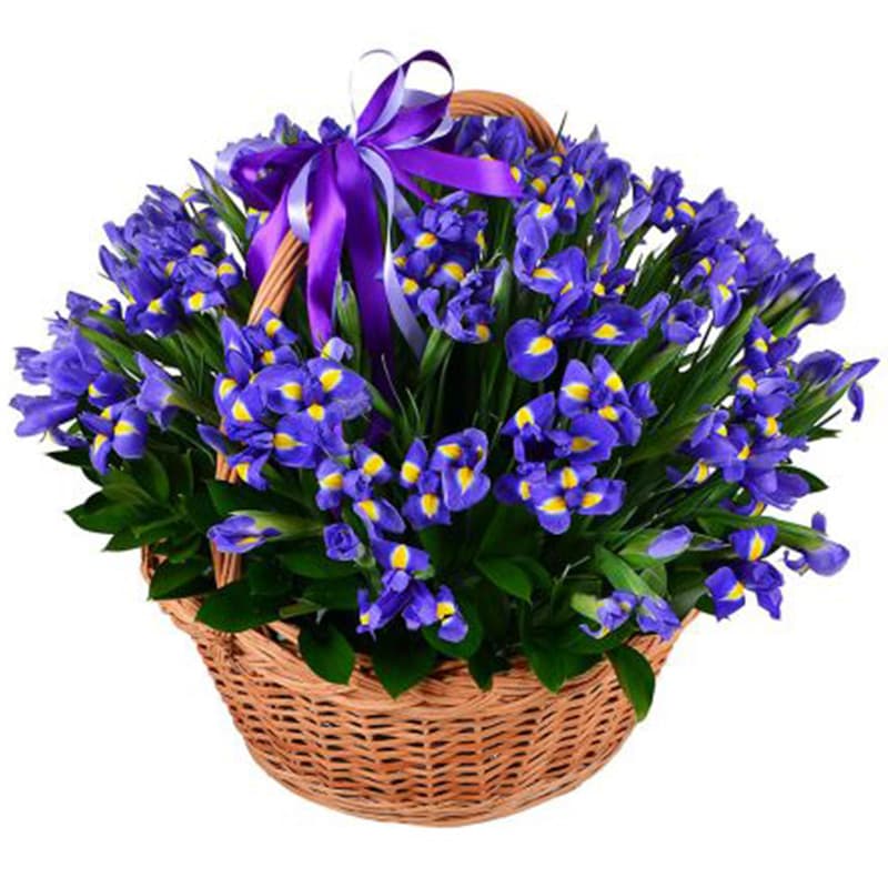 Нежная корзина с ирисами. Количество цветов 51 шт.