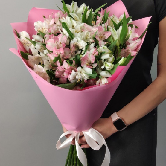 Крафт-букет из 15 веточек альстромерий «Весенняя Свежесть»