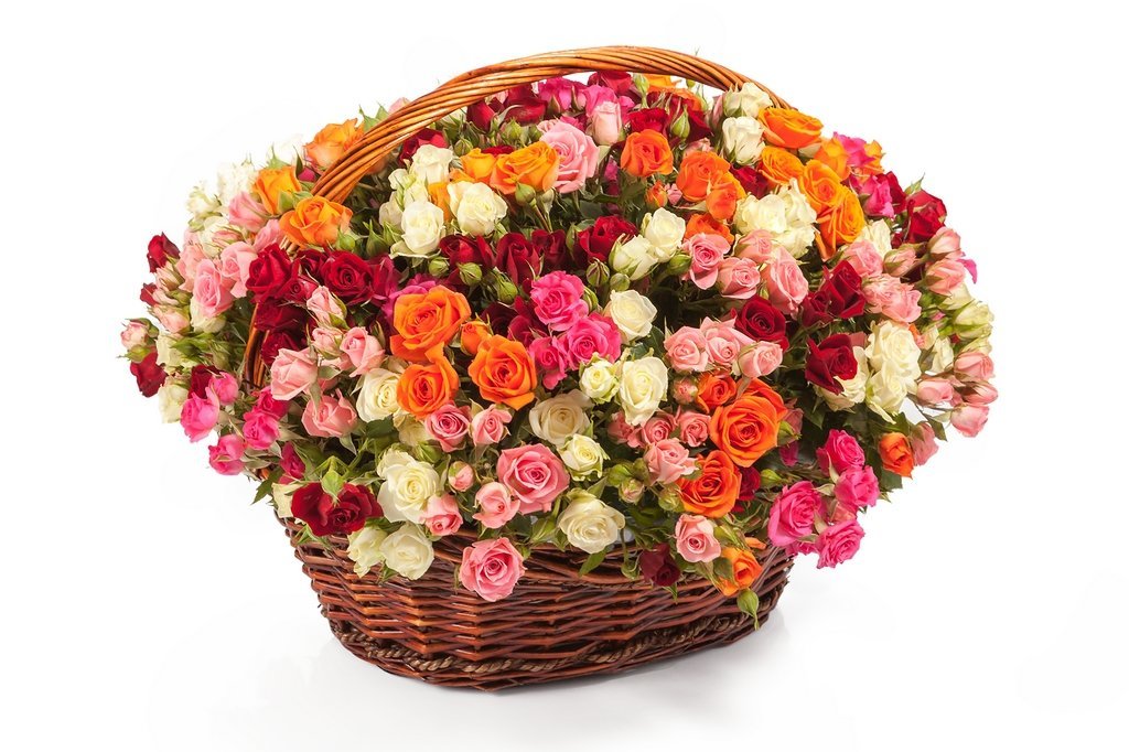 Шикарная корзина из 35 разноцветных кустовых роз покорит ее сердце!