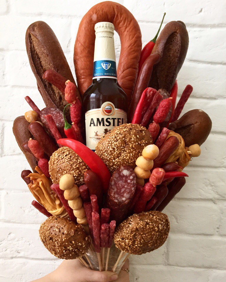 Необычный авторский букет из мясных изделий, с изюминкой в виде отсутствия оформления