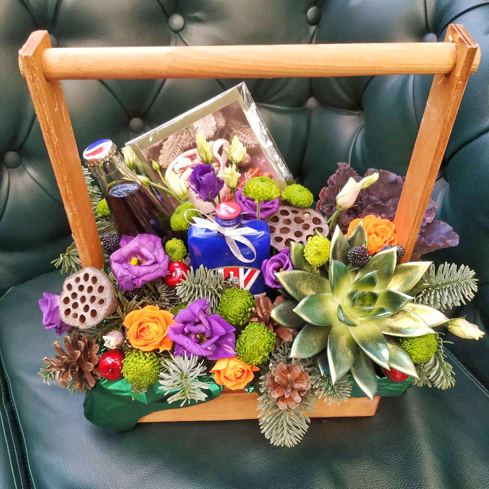 Состав: виски 0,25, кола 0,3, открытка, нобилис, цветы, новогоднее украшение