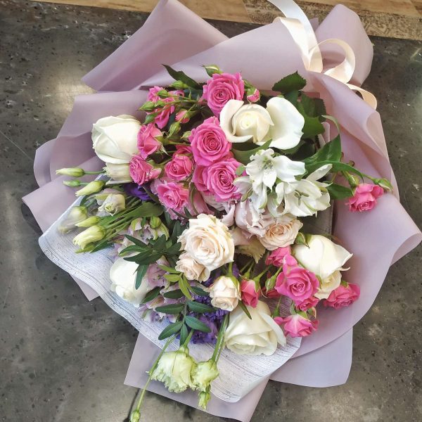 - Букеты из роз, тюльпанов, лилий и сезонных цветов