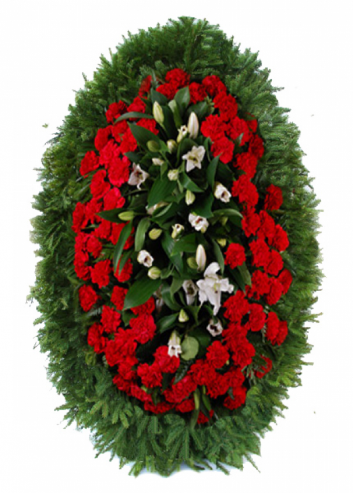 Классический венок состоит из 70 гвоздик, 6 веточек лилии и зелени